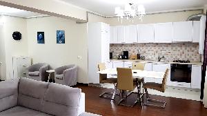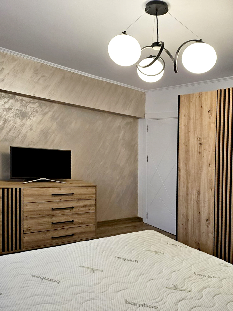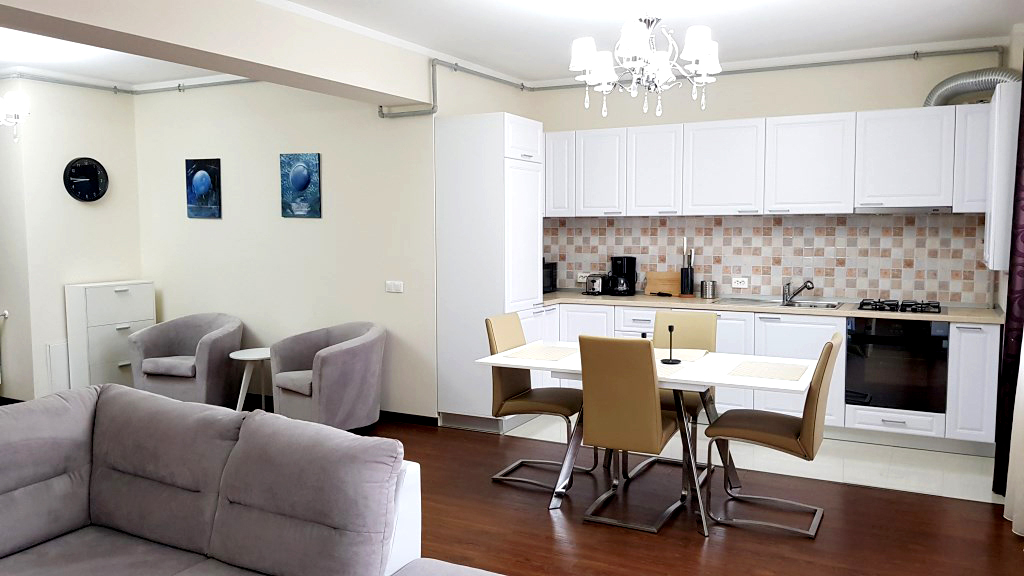 Stare imobil: constructie noua, finisaje si dotari de LUX (totul nou)Pardoseli: parchet, gresie Pereti: faianta, zugravit lavabil Tamplarie interioara: usi celulare Tamplarie exterioara: ferestre din PVC cu geam termopan Usa intrare: din metal Incalzire: cu centrala termica proprie pe gaze, cu calorifere Climatizare: aer conditionat Mobilier si dotari: apartamentul se inchiriaza complet mobilat si utilat, cu televizor, plita cu gaze, hota, cuptor electric, frigider, cafetiera, masina de spalat rufe cu uscator, masina de spalat vase (v. foto) Alte dotari: bloc dotat cu lift; sistem de alarma, loc de parcare propriu, video interfon Disponibilitate: imediat