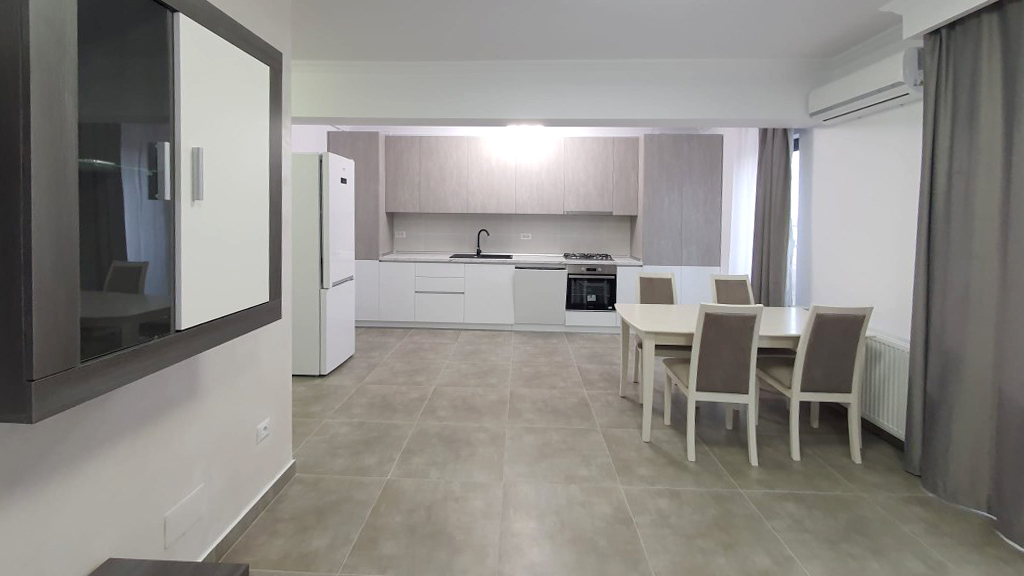 Stare imobil: constructie noua, finisaje si dotari de LUX (totul nou)Pardoseli: parchet, gresie Pereti: faianta, zugravit lavabil Tamplarie interioara: usi celulare Tamplarie exterioara: ferestre din PVC cu geam termopan Usa intrare: din metal Incalzire: cu centrala termica proprie pe gaze, cu calorifere Climatizare: aer conditionat Mobilier si dotari: apartamentul se inchiriaza complet mobilat si utilat, cu televizor, plita cu gaze, hota, cuptor electric, frigider, cuptor cu microunde, cafetiera, aspirator, fier de calcat, masina de spalat rufe cu uscator, masina de spalat vase (v. foto) Alte dotari: bloc dotat cu lift; sistem de alarma, loc de parcare propriu, video interfon Disponibilitate: imediat