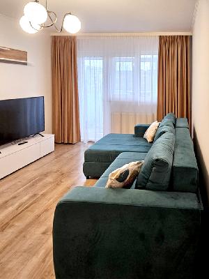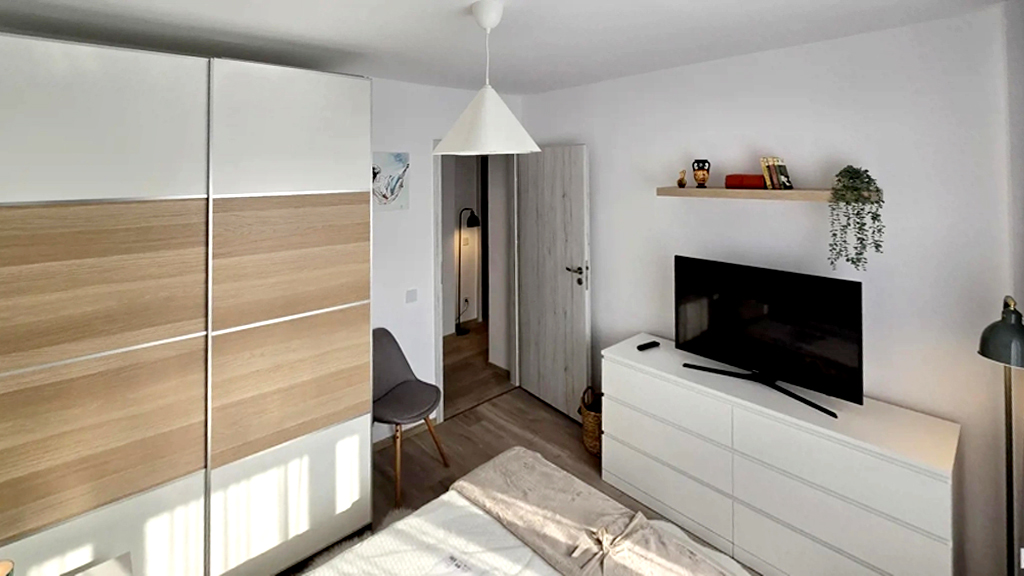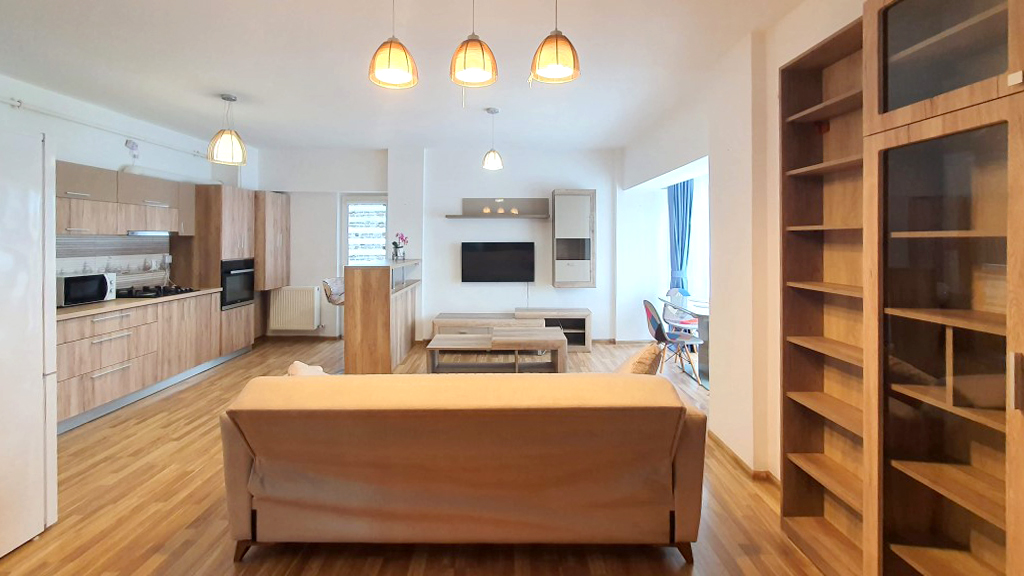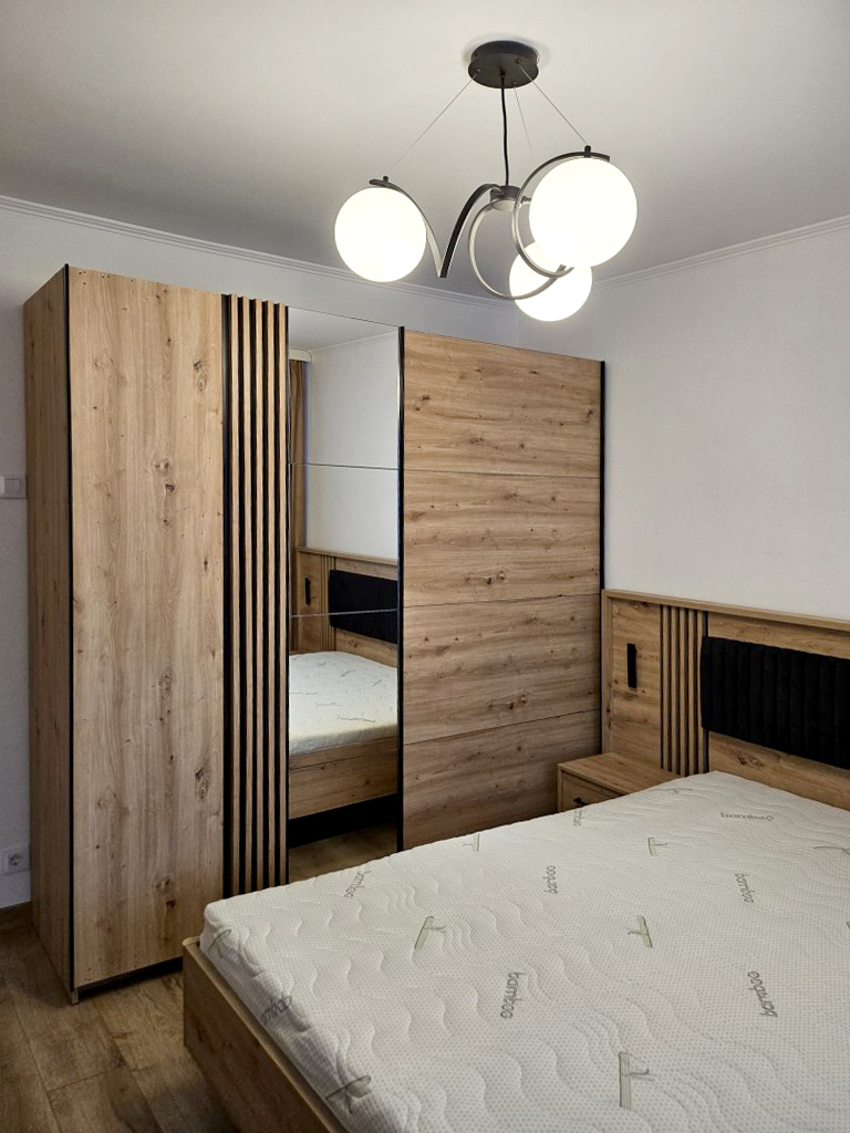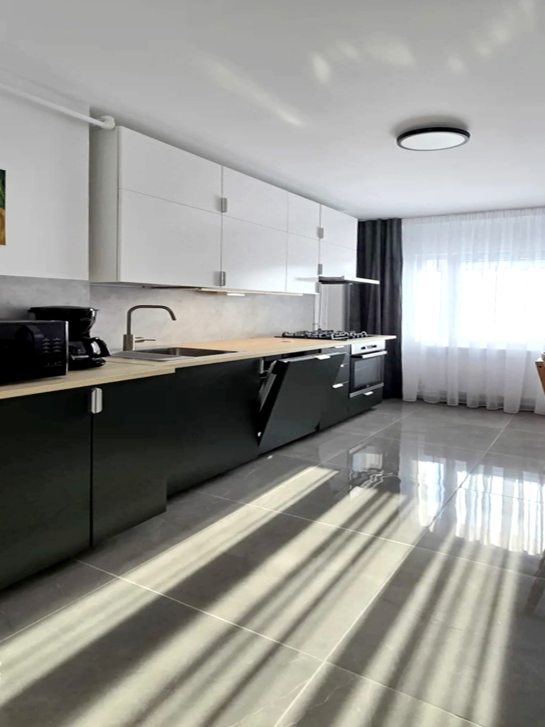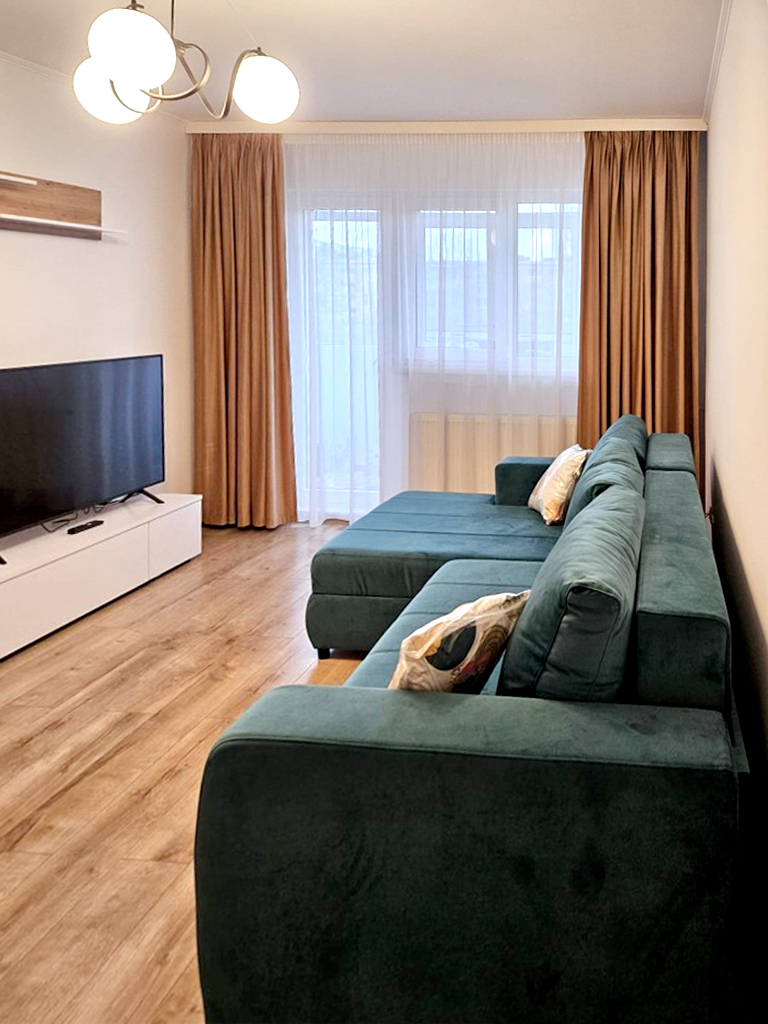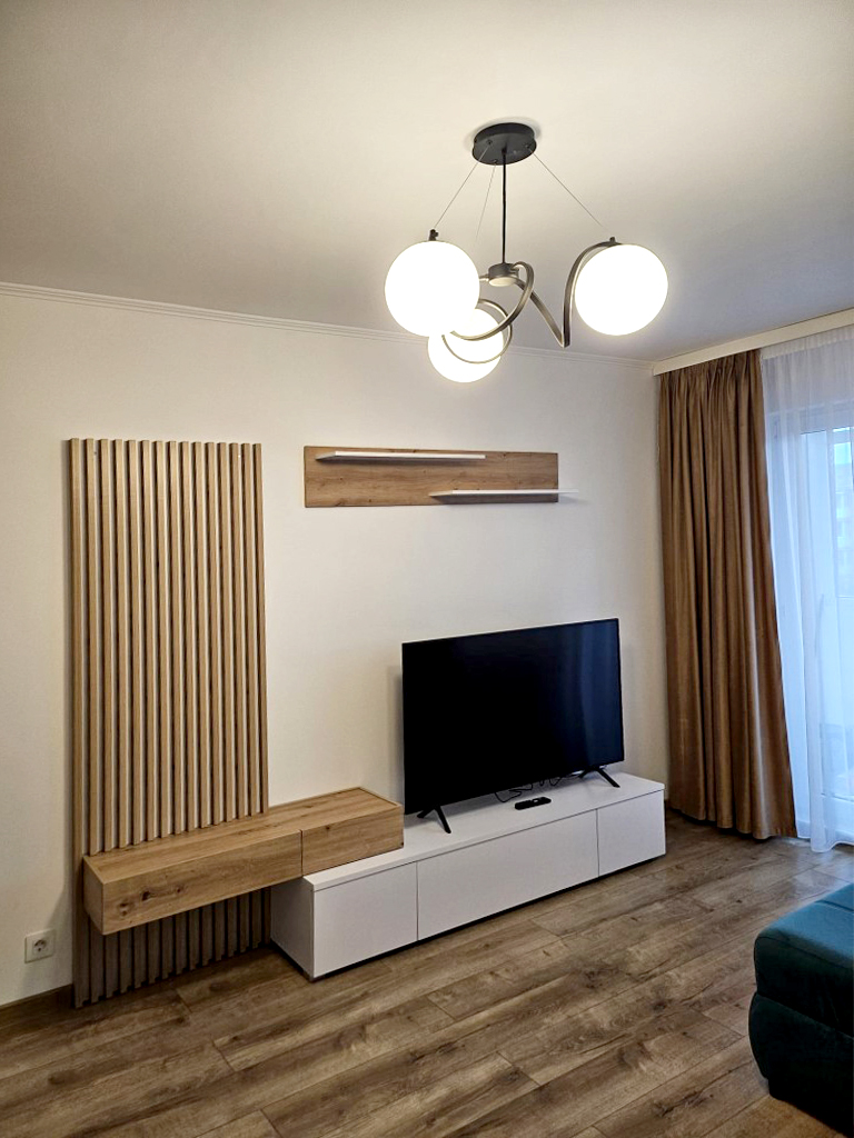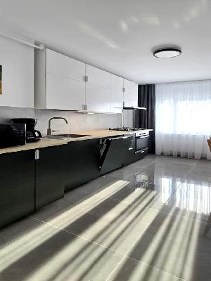 Stare imobil: constructie noua, finisaje si dotari moderne Pardoseli: parchet, gresie Pereti: faianta, zugravit lavabil, tapet Tamplarie interioara: usi celulare Tamplarie exterioara: ferestre din PVC cu geam termopan Usa intrare: metalica Izolatie termica: exterioara Incalzire: cu centrala termica proprie cu gaze cu calorifere Mobilier si dotari: apartamentul se inchiriaza complet mobilat si utilat, cu televizor, aragaz cu cuptor, hota, frigider, espresor de cafea, masina de spalat rufe, conexiune internet (v. foto) Alte dotari: apartamentul dispune de 2 locuri de parcare supraterane