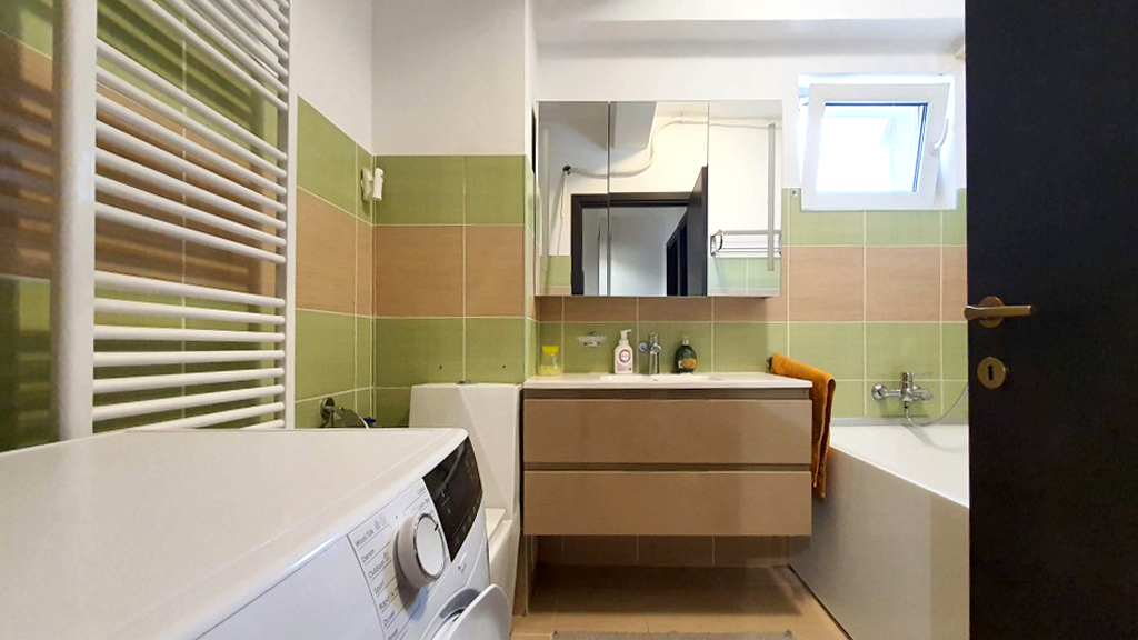 Stare imobil: renovat si utilat modern Pardoseli: parchet, gresie Pereti: faianta, zugravit lavabil Tamplarie interioara: usi celulare Tamplarie exterioara: ferestre din PVC cu geam termopan Usa intrare: metalica Balcon: inchis in PVC cu geam termopan Izolatie termica: exterioara Incalzire: cu centrala termica proprie pe gaze si calorifere Climatizare: aer conditionat Mobilier si dotari: apartamentul se inchiriaza complet mobilat si utilat, cu televizor, plita cu gaze, hota, cuptor electric, frigider, cuptor cu microunde, masina de spalat rufe, conexiune internet (v. foto) Alte detalii: blocul este dotat cu lift; apartamentul dispune de 1 loc de parcare subteran Disponibilitate: imediat