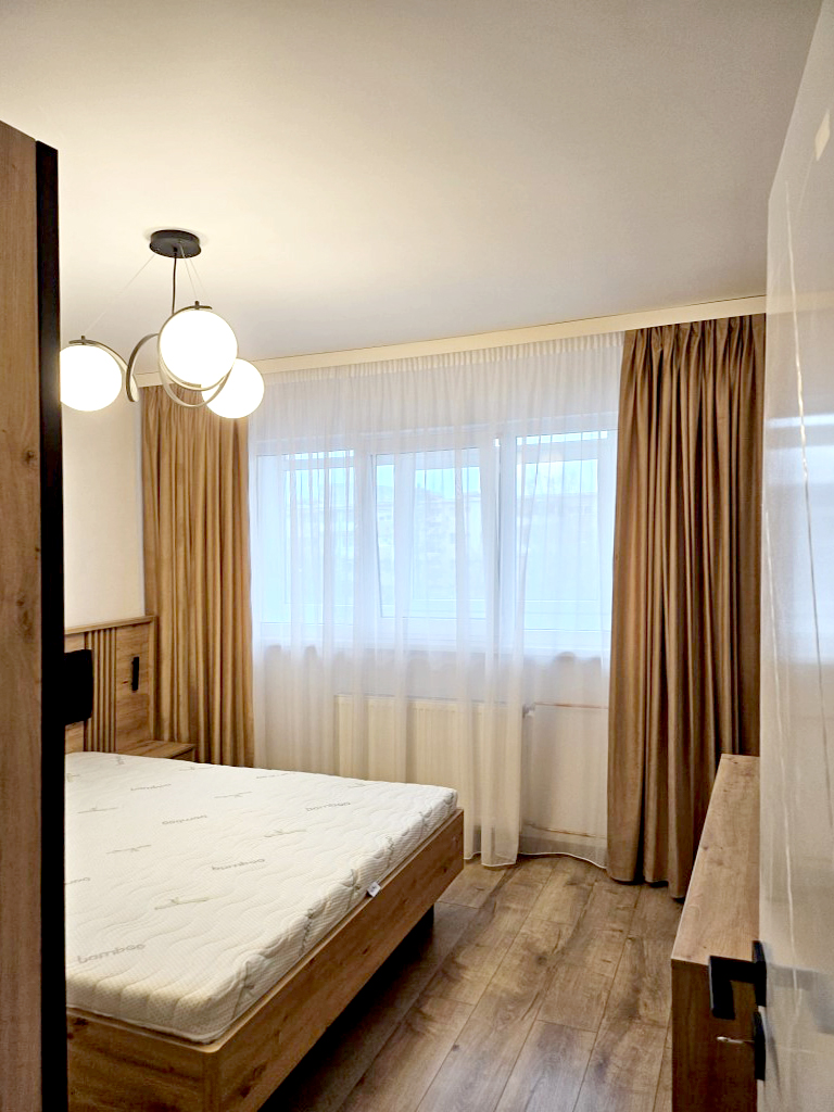 Usa intrare: din metal Incalzire: centrala termica pe gaze si calorifere Dotari si mobilier: apartamentul se inchiriaza complet mobilat si utilat, cu televizor, plita electrica, hota, cuptor electric, frigider, cuptor cu microunde, cafetiera, aspirator, fier de calcat, masina de spalat rufe, masina de spalat vase, conexiune internet (v. foto) Disponibilitate: imediat