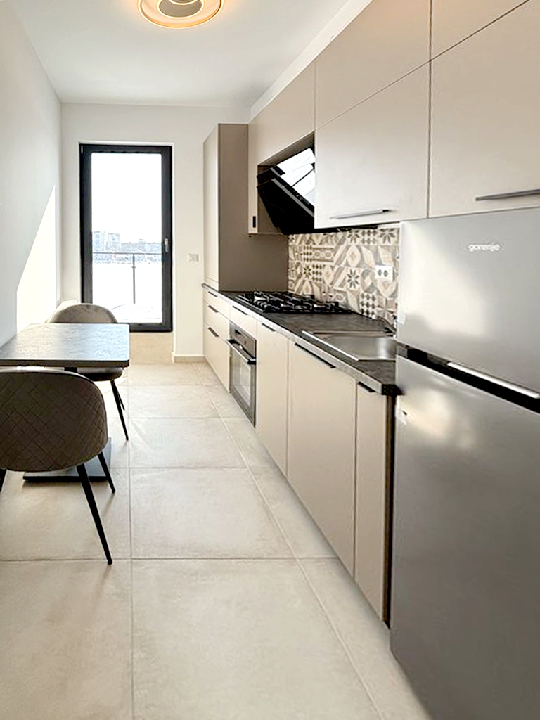 Structura de rezistenta: beton Stare imobil: constructie noua, finisaje si dotari de calitate Pardoseli: parchet, gresie Pereti: faianta, zugravit lavabil Tamplarie interioara: usi celulare Tamplarie exterioara: ferestre din PVC cu geam termopan Balcon: foarte generos (8mp) Usa intrare: metalica Izolatie termica: exterioara Incalzire: centrala termica proprie cu gaze calorifere Climatizare: aer conditionat Mobilier si dotari: apartamentul se vinde complet mobilat si utilat (v. foto) Alte informatii: blocul este dotat cu lift; apartamentul dispune de 1 loc de parcare suprateran; optional, se poate achizitiona o boxa de 6mp (accesibila din interior si exterior) Starea juridica: imobil intabulat Disponibilitate: la data vanzarii