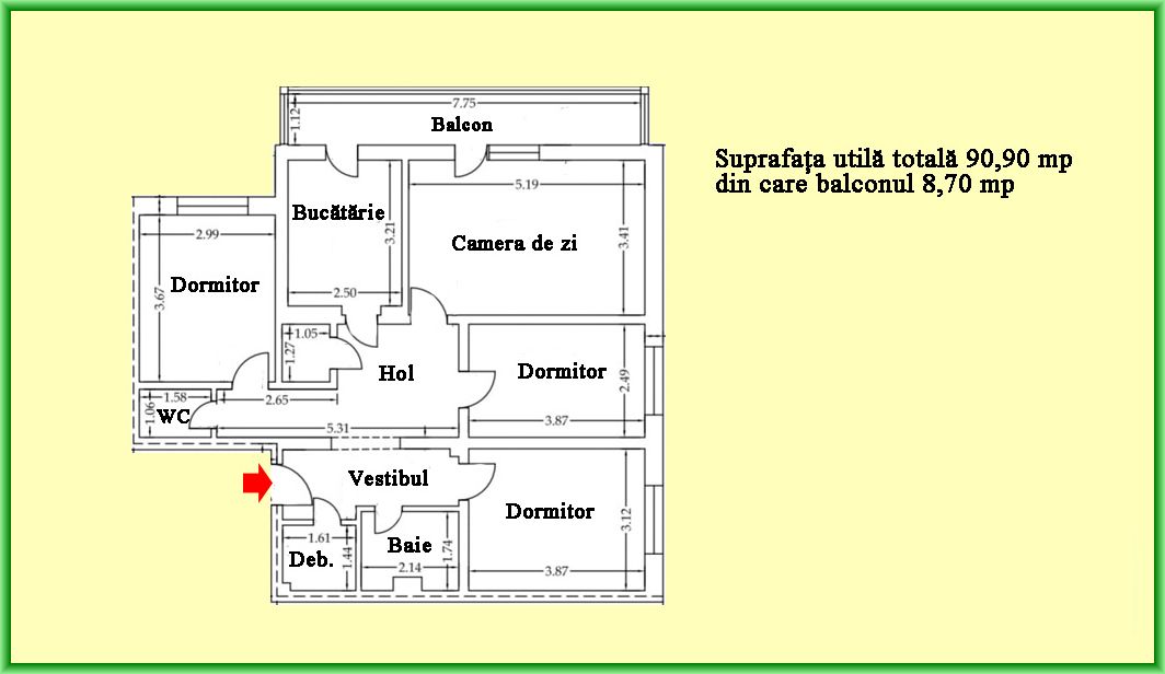 are o suprafata de 90,53 mp si este situata