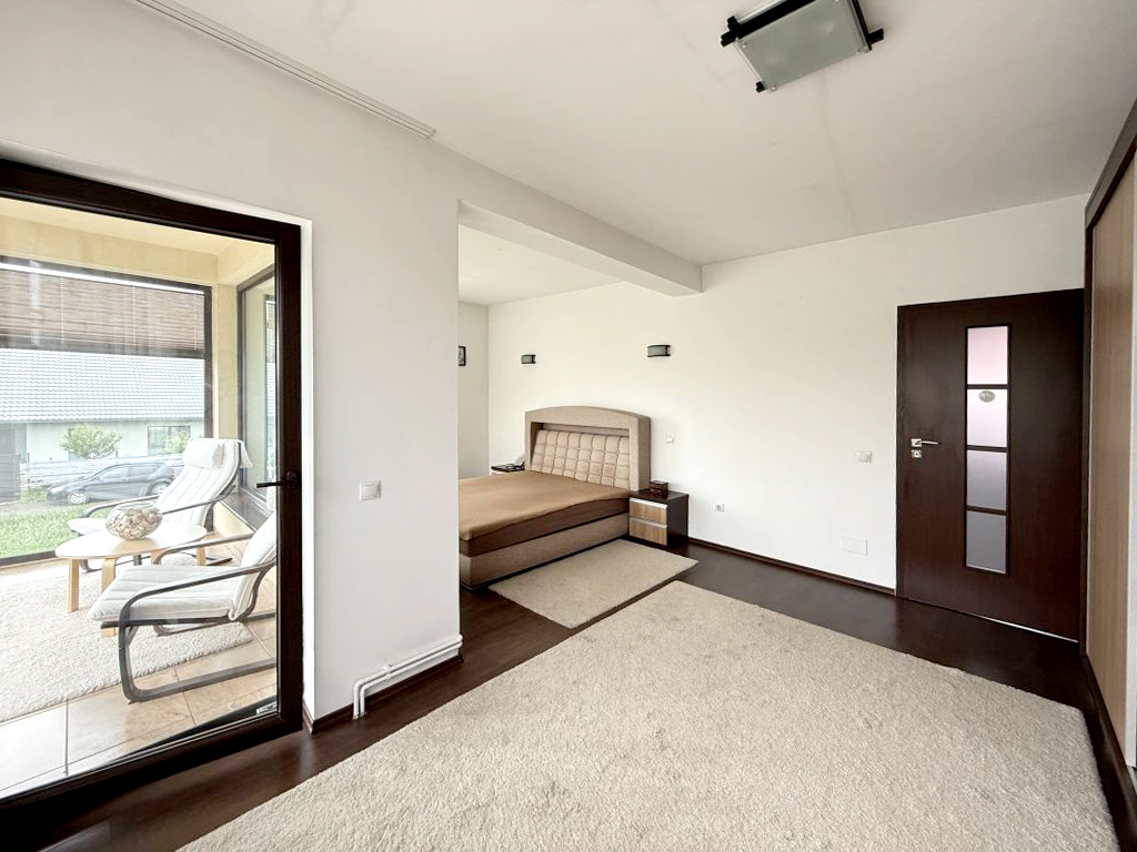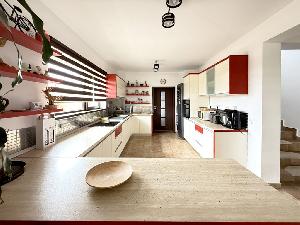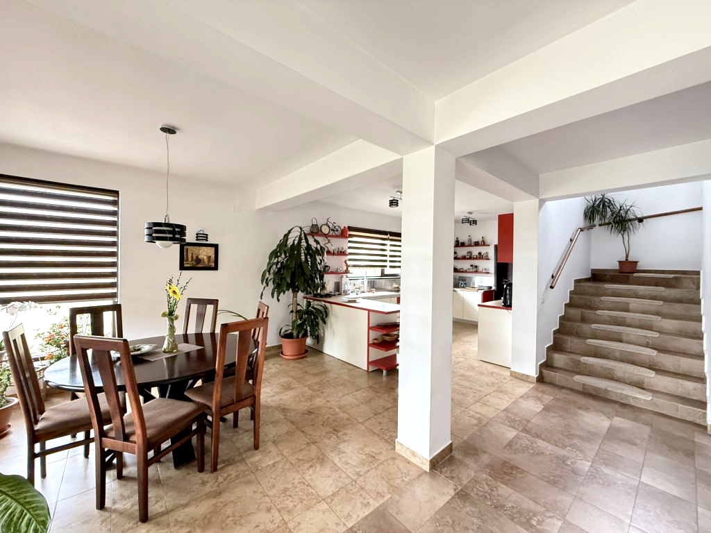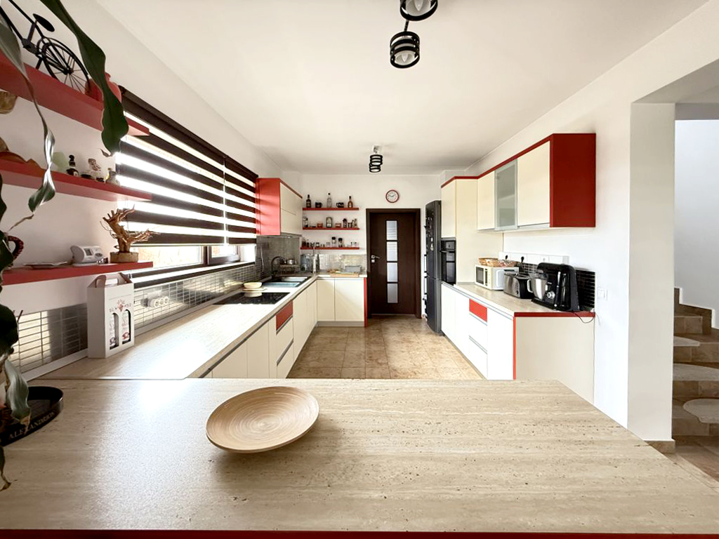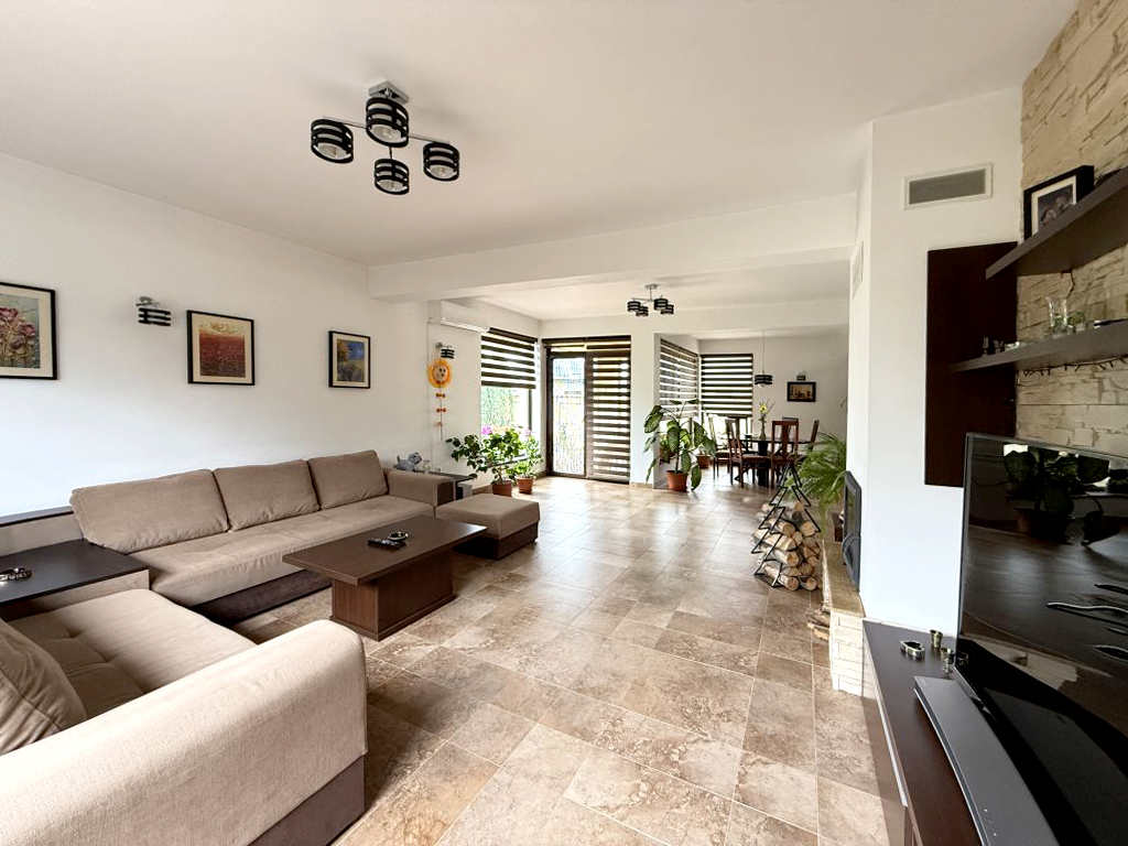 dorește confort, siguranță și eficiență energetică. Finisajele interioare sunt realizate în 2014-2015 ✅ Caracteristici principale:🔹 Suprafață construită desfășurată: 242 mp (140 mp la parter, 102 mp la mansardă) 🔹 Compartimentare: ◉ Parter: living spațios cu bucătărie semideschisă, o cameră ce poate fi folosită ca birou, grup sanitar, cu duș, o cameră tehnică unde sunt montate centrala termică și mașina de spălat rufe, garaj închis, cu acces din interiorul casei și o terasă acoperită. ◉ Mansardă: trei dormitoare, două băi, un dressing și hol. Unul dintre dormitoare are baie proprie. 🔹 Structură solidă: cadre din beton armat, pereți din cărămidă, placă de beton peste etaj 🔹 izolație exterioară: polistiren (100 mm) 🔹 Clasă energetică: B (certificat de performanță energetică disponibil) 🔹 Acoperiș: țiglă metalică 🔹 Fosă ecologică ✅ Dotări și beneficii:🔹