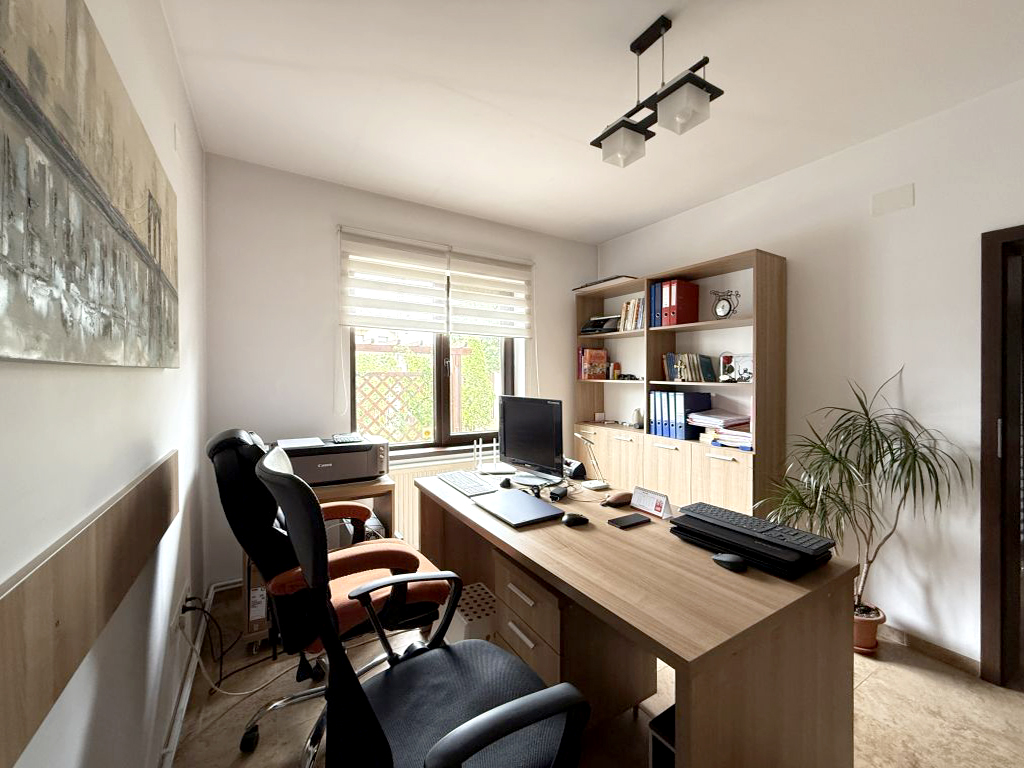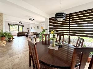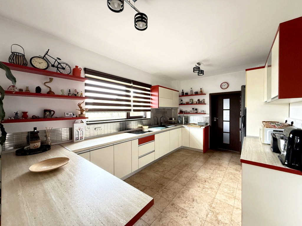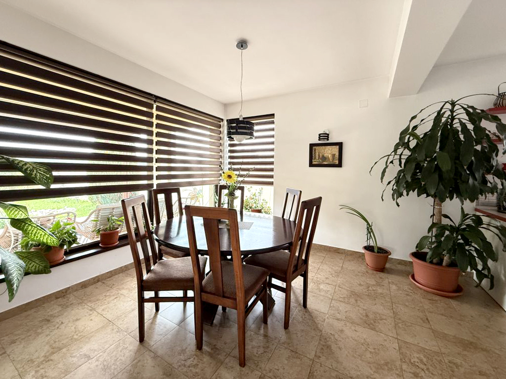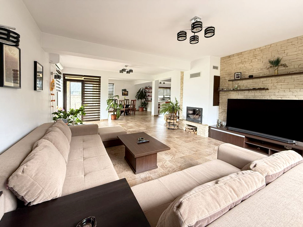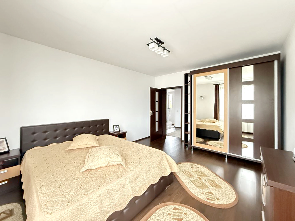 dorește confort, siguranță și eficiență energetică. Finisajele interioare sunt realizate în 2014-2015 ✅ Caracteristici principale:🔹 Suprafață construită desfășurată: 242 mp (140 mp la parter, 102 mp la mansardă) 🔹 Compartimentare: ◉ Parter: living spațios cu bucătărie semideschisă, o cameră ce poate fi folosită ca birou, grup sanitar, cu duș, o cameră tehnică unde sunt montate centrala termică și mașina de spălat rufe, garaj închis, cu acces din interiorul casei și o terasă acoperită. ◉ Mansardă: trei dormitoare, două băi, un dressing și hol. Unul dintre dormitoare are baie proprie. 🔹 Structură solidă: cadre din beton armat, pereți din cărămidă, placă de beton peste etaj 🔹 izolație exterioară: polistiren (100 mm) 🔹 Clasă energetică: B (certificat de performanță energetică disponibil) 🔹 Acoperiș: țiglă metalică 🔹 Fosă ecologică ✅ Dotări și beneficii:🔹